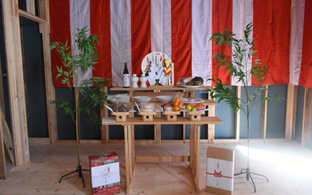 今回は上棟式・もちなげを行いました。久々の餅投げでご家族と一緒に楽しい時間を過ごさせていただきました。