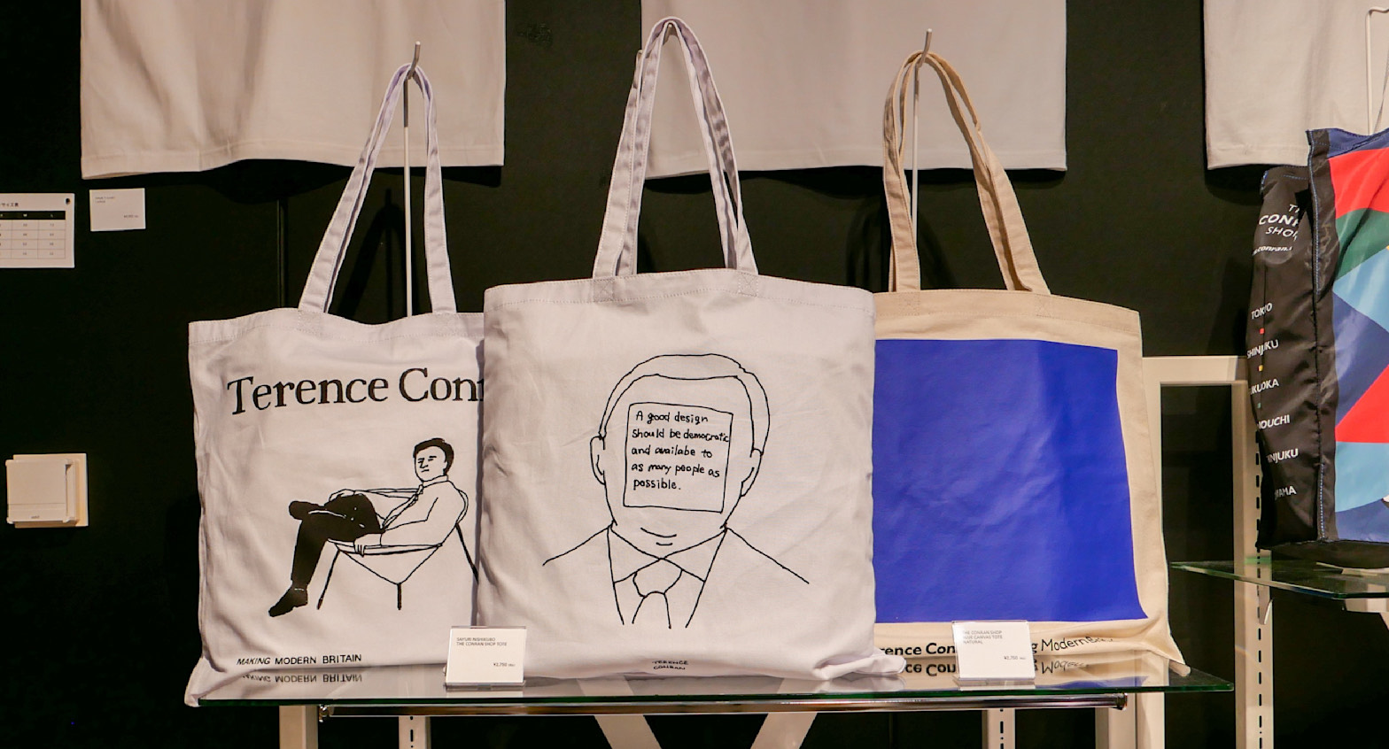 画像は拾い画ですが、こちらの青の四角のみのシンプルなデザインのバッグです。先週の紹介とかぶりますが、コンランがよく身に着けていたシャツの色、コンランブルーを再現しているという点に惚れ込んで購入したものです。