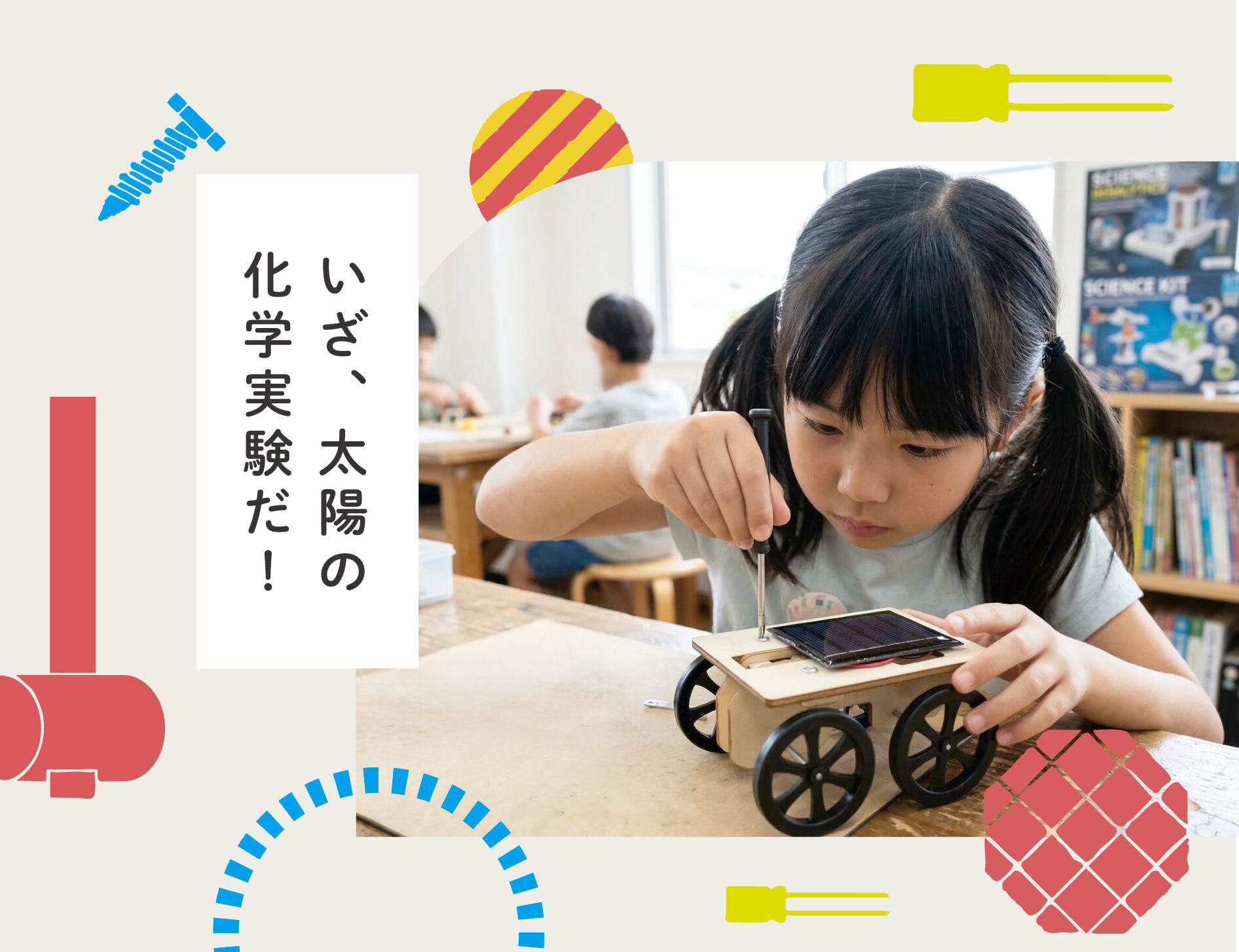 「太陽光」って、屋根の上のパネルだけじゃないんです。太陽の凄いエネルギーを、ソーラーカーを作り自分の手で「走る力」に変えてみましょう!