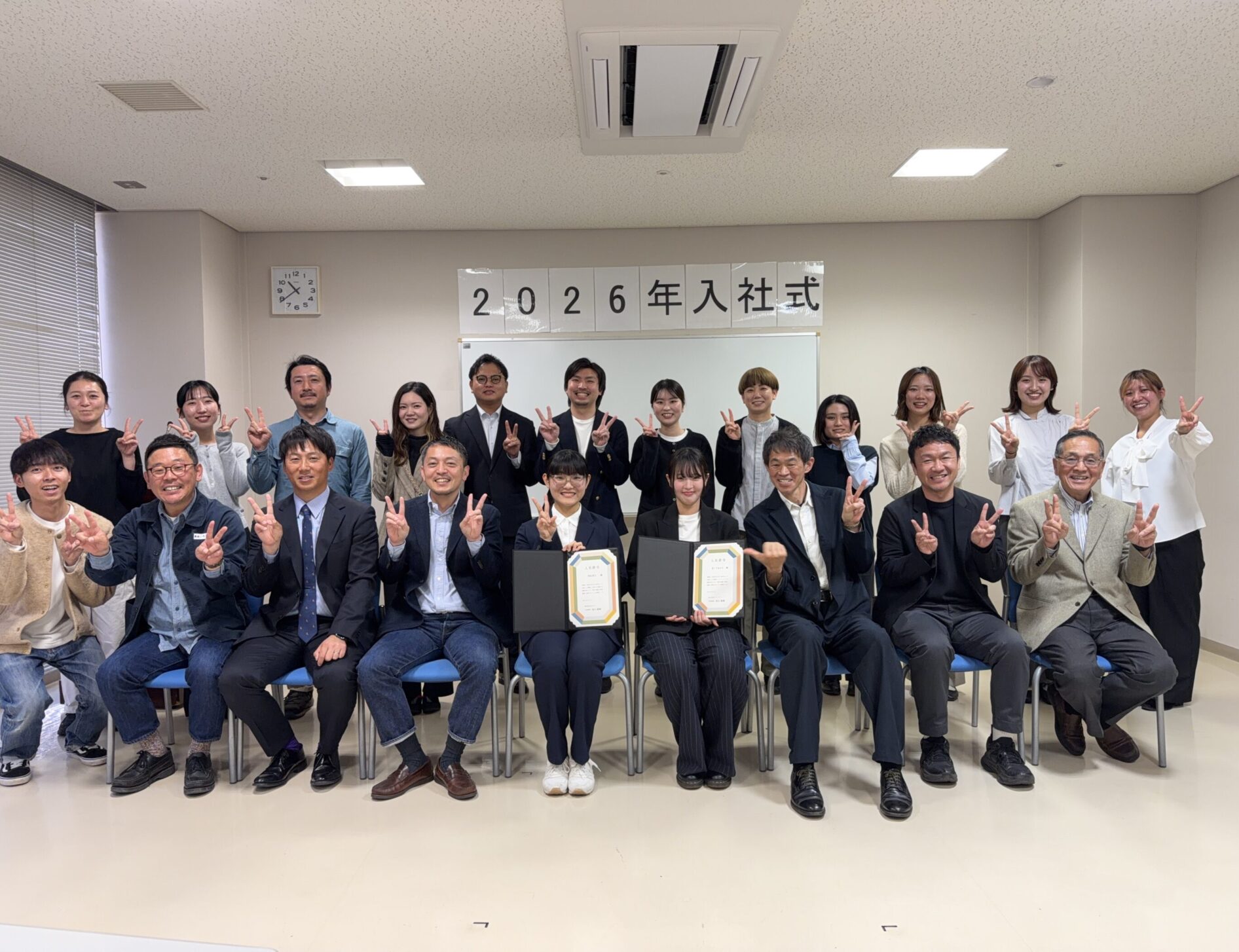 入社式写真の真ん中左です。