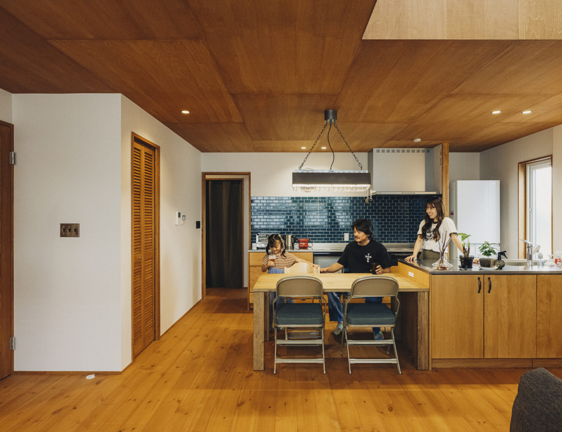 不変的な美しさと機能性を持つお家 2026.3.9 Top Works Entry グレーの外観に黒いタイルを合わせた、洗練された印象のお住まい。 室内に入ると、シナベニヤ塗装で仕上げたリビングダイニングが広がり、 やわらかな木の表情が心地よい空間を演出。 キッチンは家事効率を考えた二の字型。 毎日の料理や片付けがスムーズになり家族との時間をもっと楽しめます🍳 さらに、空間を彩るインテリアにもこだわりを。 素材や配置のひとつひとつに施主様の想いが込められています。暮らしやすさとデザイン性を両立したこだわりのお住まいが完成しました。